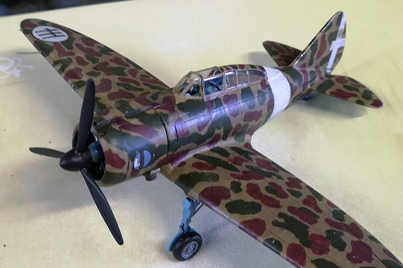 "En als tweede een Reggiane 2001 in 1/48 van het merk Sword. De 2001 had een Daimler-Benz DB 601 in plaats van de stermotor van de 2000. Het model is vrij simpel recht uit de doos te bouwen, met een goede bouwtekening. Ik heb wederom Vallejo verf gebruikt, en de decals waren goed. Het is een toestel van 152a Squadriglia, 2 Gruppo Autonomo Intercettori, gevlogen door Tenente (luitenant) Remo Cazzoli in 1942."