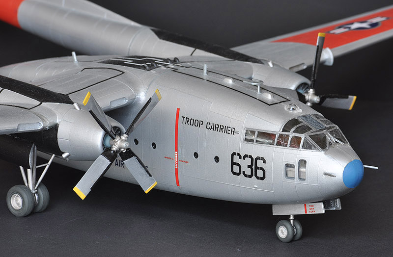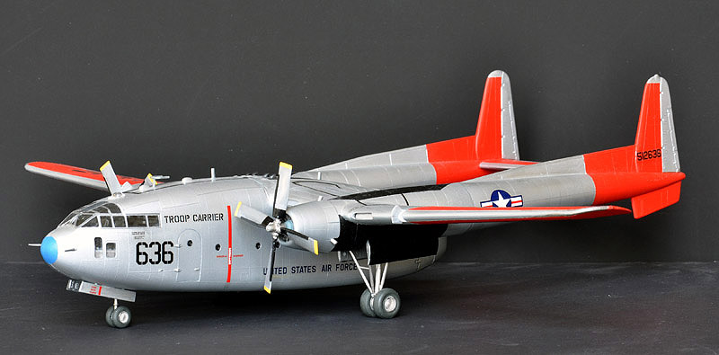 6 april 2021Leo Ripken: "Ik kan eindelijk ook wat laten zien op de pauze-pagina, en begin met twee modellen die ik redelijk recent heb gebouwd. Allereerst de C-119G 'Flying Boxcar' van Italeri in de schaal 1/72, een model dat uitkwam in 1985. De C-119 was het eerste vliegtuig dat ik zelf van dichtbij zag, op Ypenburg bij het oude stationsgebouw. Waarschijnlijk was het er één van de Belgische Luchtmacht, vanwege het groot onderhoud van Belgische militaire vliegtuigen door Avio-Diepen. Ik was erg onder de indruk. Bij de bouw van dit model moet je opletten met de vleugels, want die hebben een complexe W-vorm. Ik heb zelf niet goed opgelet, zodoende heb ik één vleugel weer los moeten maken, en opnieuw gelijmd. Verder moet er heel veel lood in de neus; bij mijn model was het maar net genoeg. Het model is gespoten met een spuitbus. De decals zijn van de versie op voorkant van de doos. Ik vind het eigenlijk het leukste model in mijn collectie."