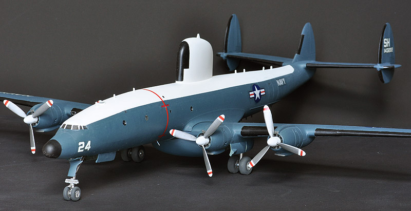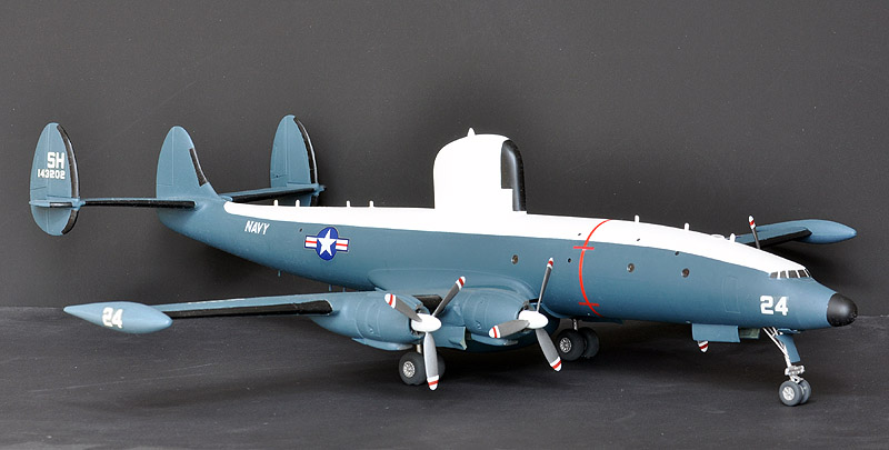 "Als tweede model de Heller 1/72 EC-121 'Warning Star', een soort van vroege AWACS, gebaseerd op de Lockheed L-1049 Super Constellation. De EC-121 is lang gebruikt, tot laat jaren zeventig, onder andere in de Vietnam-oorlog. Bij de bouw was de radome aan de onderkant lastig, want die moest precies tussen de binnenste motoren passen. Ik heb de vleugel losneembaar gemaakt om transport makkelijker te maken. De juiste kleur voor de onderkant was een zoekpartij, volgens Heller was het 'Blue Royale' wat niet waarschijnlijk was. Na een zoektocht naar foto's op internet heb ik zelf een mengsel gemaakt, en daarmee het model gespoten."