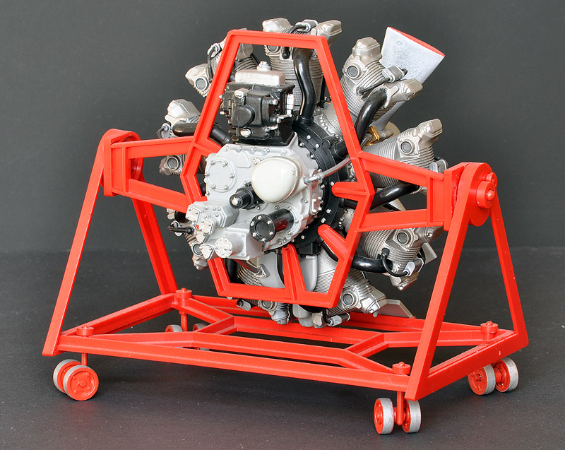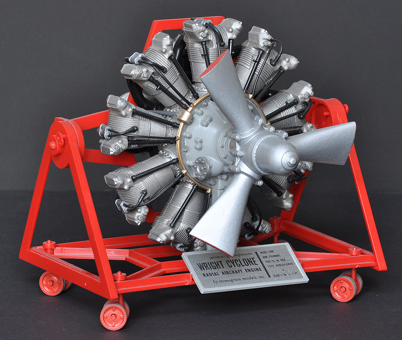 "Dit 1/12 model van Monogram is van de Wright R-1820 Cyclone, zoals gebruikt in de Dakota. In totaal zijn er 115.000 van gebouwd, en in heel veel vliegtuigen gemonteerd, waaronder de B-17 en de B-25. Het is een model uit 1959, maar ik heb de heruitgave uit 1983 gebouwd. Voor die tijd was het een erg mooi model. Het is helemaal met de hand geschilderd."