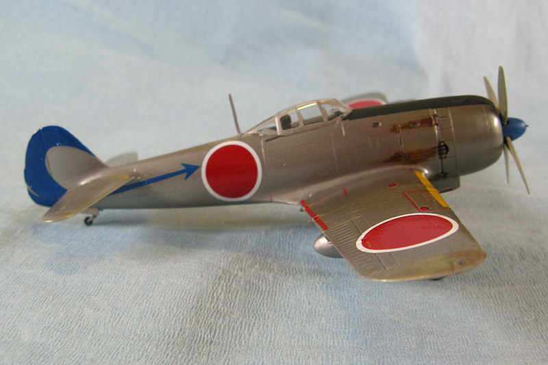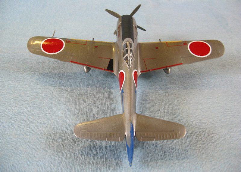 24 april 2021Patrick Verschut: "Ik heb recent weer eens een Hasegawa-model gebouwd, in dit geval een 1/72 Nakajima Ki-84 Hayate (Frank). De kit was een klein beetje een tegenvaller, omdat hij nog deels was voorzien van weliswaar fijne opliggende paneellijnen, naast een aantal ingegraveerde paneellijnen. Maar goed, daar kom je pas achter als je de kit uit de folie haalt. De kit is uit 1987, en ik verwachte daarbij geen opliggende lijnen meer. Ondertussen was ik ook bezig met een Hasegawa Ki-44 Tojo, uit 1972, 15 jaar ouder dus, en die heeft wel alleen ingegraveerde lijnen. Snap het niet. De Frank is een model in de categorie 'shake & bake': het model bouwt makkelijk weg, geen pasproblemen, een ondervleugel uit één stuk waardoor je geen gedoe hebt met de V-stelling. De grootste uitdaging was hoe ik de grote staart-rompdecal zonder beschadigingen op het model geplaatst zou krijgen."