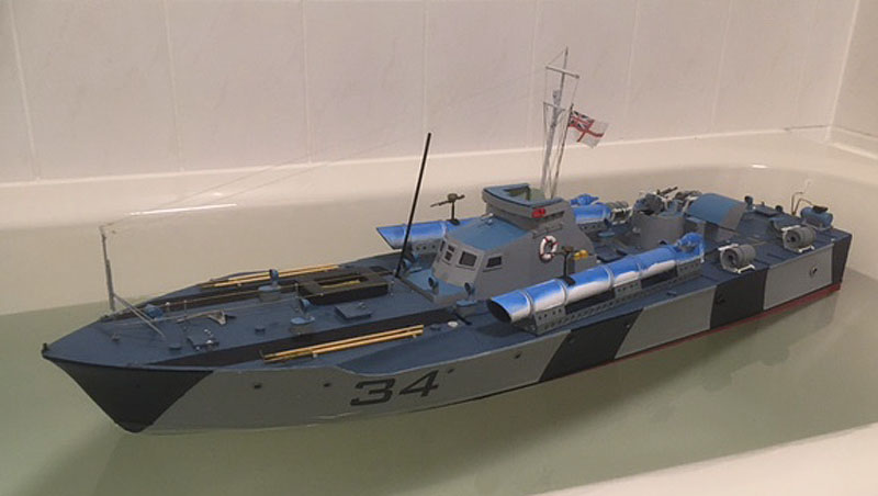 11 december 2021Walle Oppedijk van Veen: Na alle tanks leek het me aardig eens een radiografisch bestuurbare Motor Torpedo Boat (MTB) te bouwen die ook daadwerkelijk kon varen. De keus viel op een Vosper 70ft uit WWII die ik rechtstreeks bestelde bij fabrikant Deans Marine in de UK. Het ging hierbij om een recente upgrade van een ouder model. Alle RC onderdelen komen van de hobbyshop van Ted Spinders in Rijswijk. Bij het openen van de doos wordt geadviseerd alles goed te controleren. Een goed maar een onbruikbaar advies als je geen idee hebt wat je allemaal kunt verwachten. Dus op een bepaald moment maar gewoon begonnen. De eerste constatering was dat er een scheur in de romp zat van circa 3 cm. Als je net iets meer dan 500 euro hebt betaald is dat wel een teleurstelling. Verder bleken heel wat onderdelen te ontbreken, kapot of zo slecht gefabriceerd te zijn dat vervanging, aanvullingen en reparaties nodig waren. Het probleem zat niet in de fabricage (de nageleverde onderdelen waren perfect) maar in de gebrekkige controle op de kwaliteit voordat de onderdelen in de doos gaan. Ook was de communicatie met Deans Marine moeizaam, mede door misverstanden en het vakspecialistische Engels.
