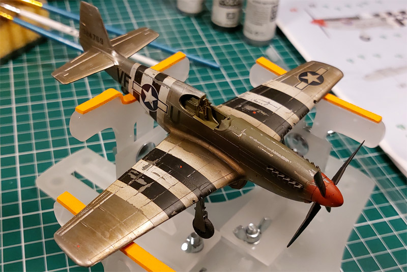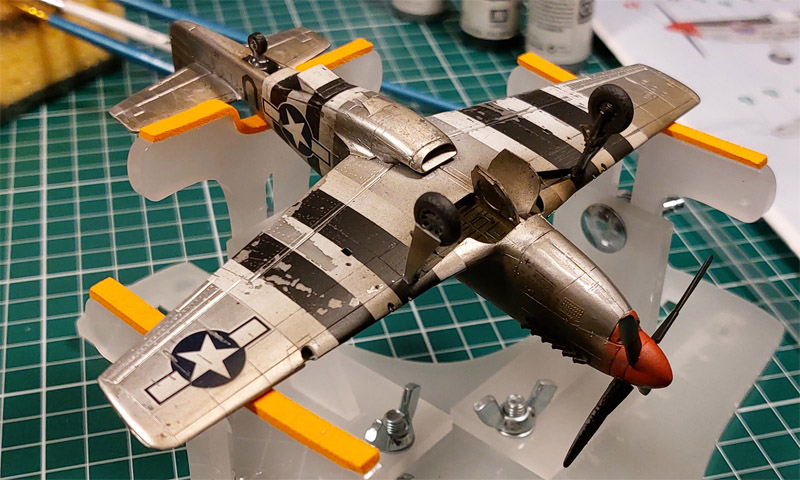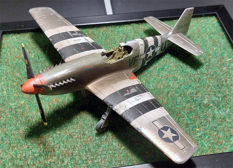 Zoals jullie kunnen zien heeft de P-51B geen canopy, deze is helaas gesneuveld in de strijd. Ik zal de details besparen, maar kan wel vertellen dat deze smelt als je hem te warm maakt. Mocht er iemand een (dunner dan origineel) aftermarket kapje weten, ik hou me aanbevolen! Al met al was het best leuk om te bouwen en ik moet zeggen dat het resultaat er in mijn ogen (vliegtuigenleek 2.0) er best aardig uit ziet. Op naar de volgende! Plakse, Mike.
