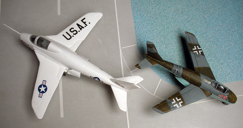 24 december 2021Dick Boogaard: Normaal bouw ik alleen prototypes als er minstens één echt gevlogen heeft, maar in dit geval heb ik een uitzondering gemaakt. De Messerschmitt P.1101 is volgens mij nooit aan vliegen toegekomen. In aanbouw zijnde exemplaren werden door de Amerikanen meegenomen. Dit toestel had vleugels met een verstelbare pijlstand, zij het alleen op de grond. Later werd de Bell X-5 naar het zelfde idee gebouwd en die vloog wel. De Bell X-5 is volgens mijn herinnering een kit van het Franse merk Mach 2. De Messserschmitt is van Dragon. De bouw was niet moeilijk, de bijgeleverde raketten heb ik niet gemonteerd. Zoals het model er nu uitziet, is het al fantasierijk genoeg.