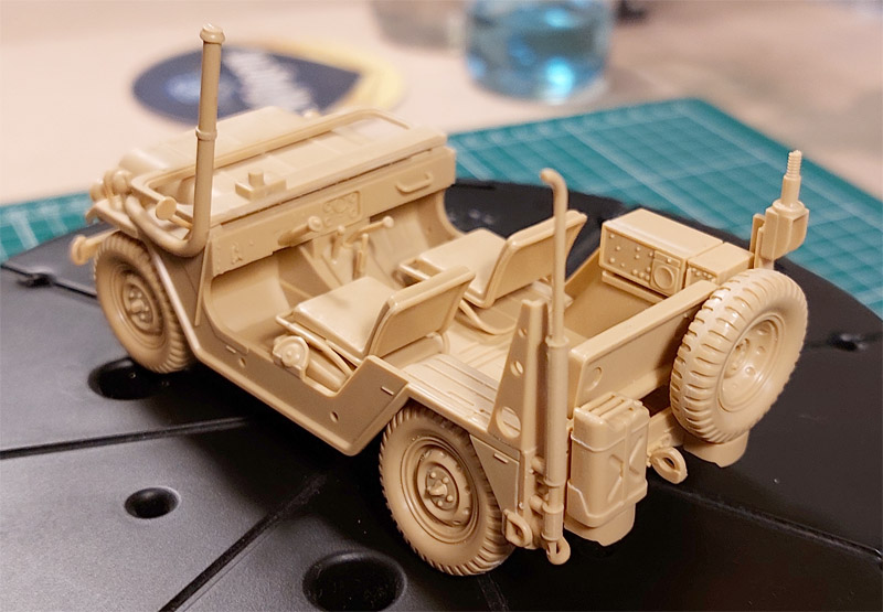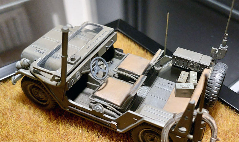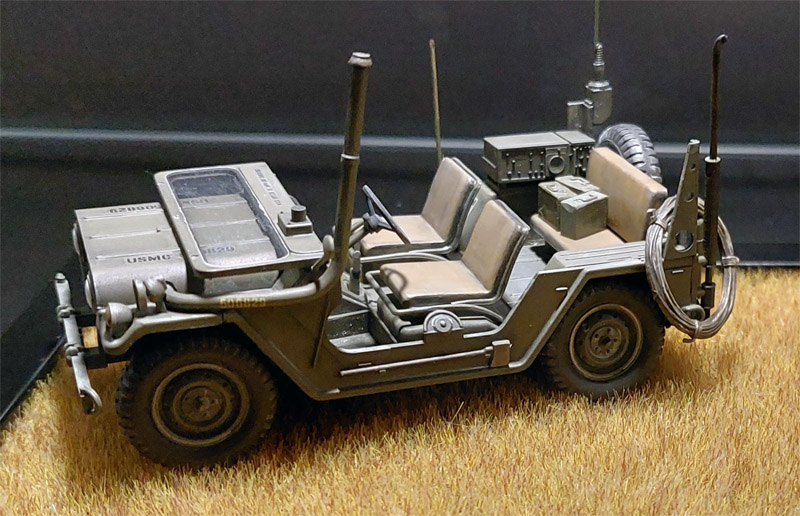 30 december 2021Mike Roelofs: Laten we het een eindsprint noemen; zo net voor het einde van het jaar is de voorraad een doosje armer en de vitrinekast een model rijker. Deze keer is het een kit van Tamiya: de U.S. M151A2 Ford Mutt 1/35 (no.35123) in de uitvoering van het U.S. Marine Corps. Wederom een leuke kit om te bouwen, weinig grote problemen en vliegt als vanzelf in elkaar. Allereerst een tweetal foto's van het 'kale' model: