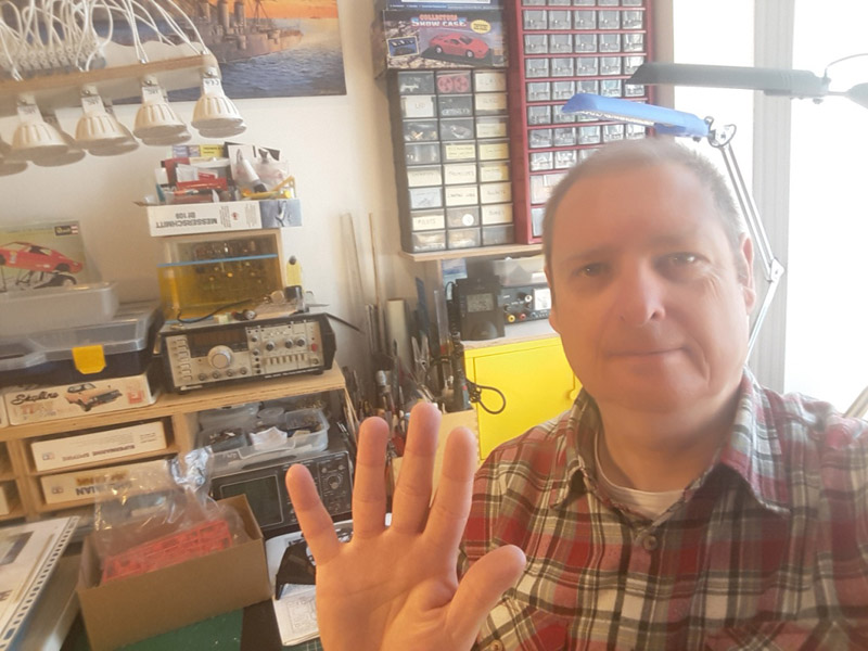 Nu de regio-avonden zijn stilgelegd is het leuk om toch nog contact met elkaar te houden. Chris kwam met het idee een webpagina te maken waar iedereen kleine updates van zijn modelbouwavonturen kan posten. We voegen de updates op volgorde van datum toe. We hebben tot nu 11 bijdragen met 25 foto's ontvangen. Als je wat hebt, stuur het naar Rob de Bie, en het wordt toegevoegd. Alles is welkom, je kunt hier bijvoorbeeld andere dingen laten zien dan op een regioavond. 30 maart 2020Dick Boogaard: "In Houten zag ik een simpel doosje met een afbeelding van een Zweedse civiele Sea Venom voor een klein prijsje. Uit nieuwsgierigheid nam ik hem mee. Bij inspectie bleek het om de vermaarde Frog/Novo kit te gaan met een paar extra onderdelen en wat instructies voor het verwijderen van de specifieke carrieronderdelen. Opvallend is vooral de verlenging van het horizontale staartvlak. Hij werd gebruikt als doelsleper. Later is hij weer in de oorspronkelijke staat teruggebracht en in een Zweeds museum geplaatst." ![]() 29 maart 2020Rody Verkruissen: "Dit is een GMC trekker uit de tweede wereldoorlog. De trailer wordt van scratch gemaakt." ![]() ![]() 29 maart 2020Cor Markus: "Ik ben aan de slag gegaan met het maken van decals. Papier en dergelijke gekocht. De resultaten zijn nog niet wat ik wil hebben, maar het is wel hoopgevend." ![]() ![]() ![]() 29 maart 2020Rob de Bie: "Als je je verveelt tijdens de lockdown, dan zou je eens een blik kunnen werpen op mijn webpagina over Humbrol tin evolution, waar de vele uitvoeringen van de blikjes in kaart zijn gebracht. Ik durf de gok wel aan dat ALLE leden van de regio Zuid-Holland met Humbrol gewerkt hebben (met uitzondering van Tim van 10). Ik vind de verf persoonlijk steeds slechter worden, en wat je nu koopt is soms meer een pasta, die ook nog eens heel slecht dekt. Ik gebruik ook wel eens een oud blikje Humbrol Authentics, en ik schrik steeds dat die verf wel in één laag dekt met de airbrush." ![]() 28 maart 2020Reinhold Bogaard: "Voor de Heavy Hugger heb ik een Slixx decalsheet om een Jungle Jim funny car te bouwen. Zo heb ik alvast wat nieuws voor het 'Racing' ESM-thema. Er is een eerste begin van het glad krijgen van de body. Na drie lagen superlijm heb ik nu een laagje Humbrol primer gespoten om het beter te kunnen zien. Ondertussen heb ik de wieken van de Cierva Autogiro met superlijm aan elkaar weten te plakken zonder dat het bij de eerste aanraking weer afbreekt. Ik ga niet eens proberen die mee te nemen naar Rijswijk :-) En een foto met groeten vanaf mijn modelbouw plek." ![]() ![]() ![]() ![]() ![]() 27 maart 2020Rob de Bie: "Hier een redelijk recent projectje van mij. Ik wilde de 'Blue Bird' oefenbom van de Thunderstreak namaken in 1/48. In de onderdelendoos vond ik een raket met een body van 4,2 mm, de diameter die ik zocht. Het bleek later een Bullpup van een Matchbox 1/72 A-4M/N te zijn. Het ding was wel hol, dus volgestopt met plastic staf. Daarna in de motortool geklemd, en met een X-acto-mes als een beitel draaiwerk gedaan. Dat levert veel troep op, maar het wordt wel mooi rond. Ook de twee rondomlopende paneellijnen meteen gesneden. Daarna een precisieklusje: het bouwen van het staartje van grofweg 4 mm in alle richtingen. Begonnen met het vierkantje binnenin, 2,2 x 2,2 x 2,6 mm groot, van 0,3 mm card. Daarvan de hoeken iets afgeschuind om als lijmvlak te dienen voor de vier vinnen, gesneden uit een stukje van 4,8 x 2,6 mm. Het resultaat heb ik op een gietblokje gelijmd, met een stukje plastic card ertussen. Zodoende kon ik na het gieten het staartje 'netto' loszagen met een JLC zaagje. In de foto zie je ook twee resultaten, in 'oefenbomblauw'." ![]() ![]() 26 maart 2020Reinhold Bogaard: "Deze Heavy Hugger kit is een heruitgave. Het copyright vermeldt 1971, maar deze kit is van 1996. De eerste uitdaging is om de body strak te krijgen. Ik ben de overgangen tussen de delen met superlijm aan het vullen. Is dat niet voldoende dan kan altijd nog de putty worden ingezet. Tevens al begonnen aan de rubber (?) banden. Ik heb een 11mm dopsleutel met een bout er door heen, waar veel 1/24 en 1/25 banden strak op passen. Dat maakt het makkelijker om te schuren tot er iets aannemelijks ontstaat. Deze kit heeft twee helften voor iedere band. Handig bedacht, maar niet heus. Gelukkig werkt de verse superlijm ook hier." ![]() ![]() ![]() 21 maart 2020Brian Kirwan: "Deze Airfix 1/72 TSR2 was een 'shelf of doom' gevalletje. Maar ik heb het model een paar weken geleden opnieuw opgepakt en er een vliegend model van gemaakt. Het onderstel van deze kit is schijnbaar erg slecht, dus de keuze was niet zo moeilijk. Ik heb in het bomluik een bevestigingspunt aangebracht voor de koper standaard en de deuren van Evergreen gemaakt. Omdat wit een super saaie kleur is heb ik het toestel ook flink verweerd en een hoop extra zwarte stencildata toegevoegd om het wat meer levendig te maken. En dit is het eindresultaat." ![]() ![]() ![]() 20 maart 2020Chris Ravensteijn: "Vandaag met een IPMS-lid mijn Trumpeter 1/16 Abrams M1A1 bouwdoos geruild voor een nog niet geheel afgebouwde Dragon 1/6 Willy's Jeep met 37 mm antitankgun ook van Dragon. Er moet nog het een en ander aan gebeuren (klein grut hoofdzakelijk) en stoelen e.d. vastzetten. Dit model vond ik altijd al leuk en ik heb er nog drie Dragon 1/6 figuren voor die er in gezet kunnen worden, dus zeker een 'levendige' aanwinst." ![]() 19 maart 2020Rob de Bie: "Ik ontdekte nog iets klein-maar-fijn aan de 1 op 1 Postjager: in een advertentie van de ballonbanden van Goodyear was te zien dat er een vlaggetje op de ballonbanden was aangebracht. Snel gekeken naar de Postjagerfoto's, en ja hoor, die hadden het ook. Leuk!" ![]() ![]() 15 maart 2020Rob de Bie: "Ik ben bezig alle 'stores' van de KLu Thunderstreak te bouwen. Op het laatste moment is er eentje bijgekomen: de ALE-2 chaff pod die door (waarschijnlijk) de sleepvlucht van Leeuwarden werd gebruikt. Ik heb er eentje gebouwd van twee napalm-tanks, met een luchtinlaat aan de voor
