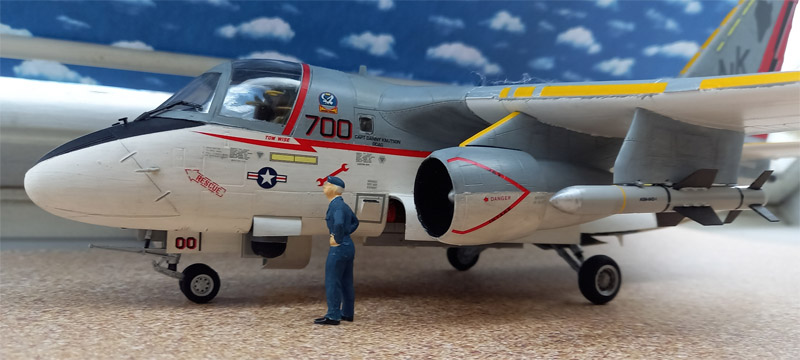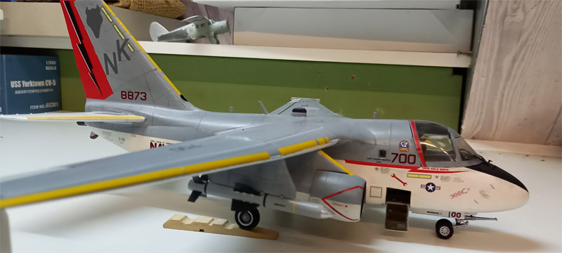 7 maart 2021Jos van der Sluijs: "Recentelijk heb ik de Grumman Tracker gebouwd, en nu is zijn opvolger gereed: de Lockheed S-3A Viking. Het model is van Italeri, schaal 1:48, prijs 32,95 euro. De kwaliteit van Italeri-modellen is redelijk, en ze zijn niet echt prijzig. De hogere prijzen van andere merken (meestal Japans) zijn het vaak waard, want de kwaliteit, de tijd, de moeite en het resultaat zijn meestal navenant. Het bouwen van de Viking gaf weinig problemen. Allereerst de romp in orde gemaakt, daarna de vleugels met straalmotoren en bewapening, en op het laatste moment een niet voorzien probleem: de bevestiging van de vleugels aan de romp. De vleugels zijn lang, groot en zwaar, maar de bevestingspunten zijn in verhouding veel te klein. Een beetje modelbouwer lost dit op met atoomlijm, ondersteuning en een nachtje drogen. Mijn volgende project is de op het land gebaseerde collega van de Viking: de Lockheed P-3 Orion in de schaal 1:72."