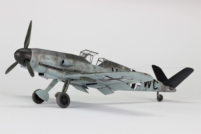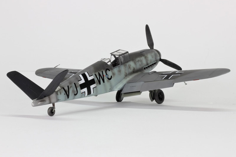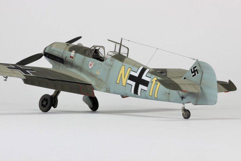 "In de tussentijd heb ik ook een bijzondere 1/48 Bf-109G gebouwd. Het is het derde 'Gustav' 109 airframe welke is geproduceerd en deze werd in 1942 voorzien van een V-staart. Dit bleek niet geheel stabiel te zijn in de lucht dus dit project werd snel gecanceld. De kit is van Gartex, dat is/was een submerk van Hasegawa. Het is in feite een Bf 109F kit met wat extra resin en metalen onderdelen."