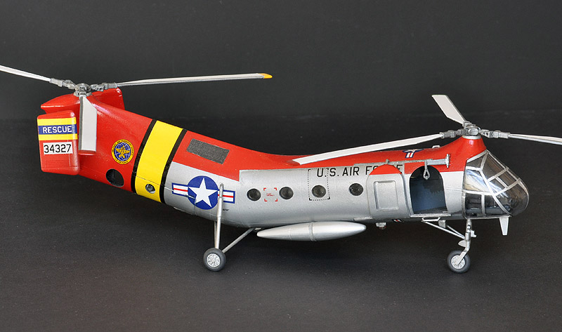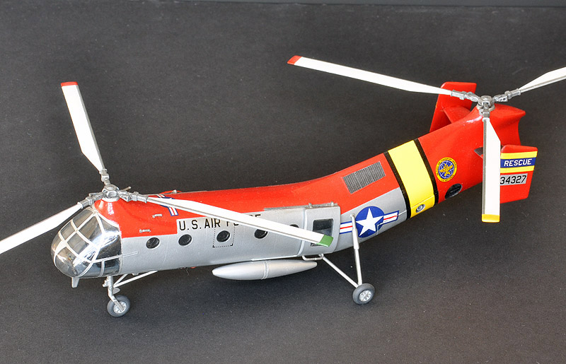 3 mei 2021Leo Ripken: "Mijn derde bijdage: twee kleurrijke helicopters. De Italeri 1/72 Piasecki H-21B 'Flying Banana'. Deze heli heb ik ongeveer 10 jaar geleden recht uit de doos gebouwd, en voor de Amerikaanse versie gekozen. Er zaten ook Canadese en Franse decals bij. Zelf heb ik een lier toegevoegd, en een lampje aan de onderkant verbeterd met Kristal Klear."