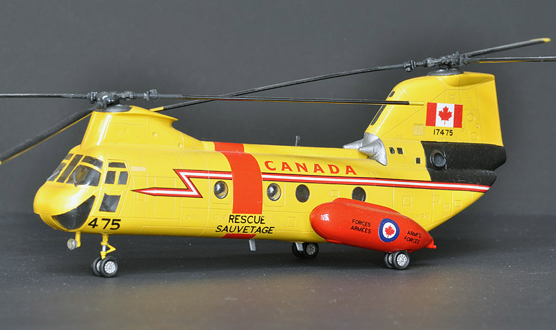 "De tweede heli is de Hobbycraft 1/72 CH-113A Labrador, ook bekend als de CH-46 Sea Knight. Dit model heb ik 5-6 jaar geleden gebouwd. De Canadese markingen vond ik het leukst, maar het was wel even zoeken naar de juiste kleur geel, die ik daarna gespoten heb. Wat ik er ook leuk aan vind is dat het een militair toestel is dat ten nutte van de mens wordt gebruikt."