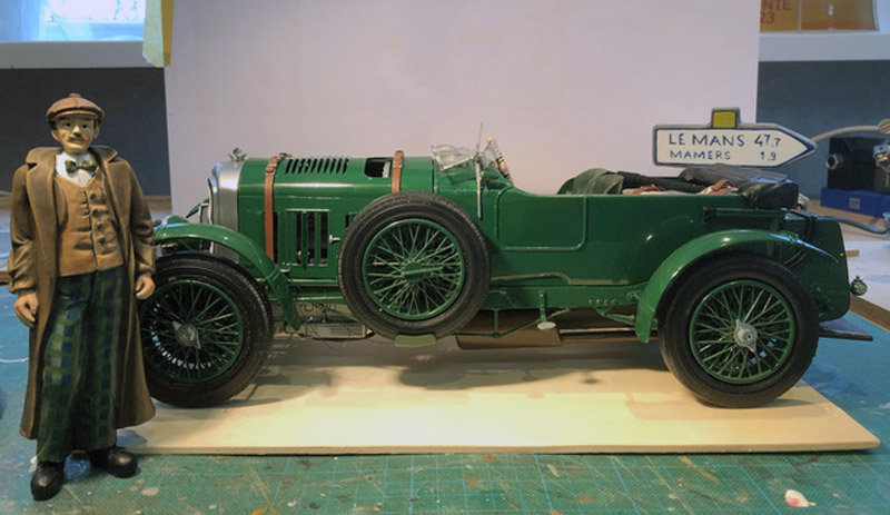 5 mei 2021Annamarie Jongbloed: "De grootste legende in de Britse autohistorie is ongetwijfeld de Bentley 4.5 Litre Blower, die de 24 uren van Le Mans in 1928 won. Dit Airfix model in de schaal 1/12 werd gekocht bij ons gewaardeerde lid Johan Vester. Ik had een lange adem nodig om het model in oude glorie te herstellen. Met de juiste kleur, nieuwe decals, koffers, een Engelse bestuurder (die nog niet helemaal af is) en een zelfgemaakt Frans wegwijsbord begint het geheel al aardig vorm te krijgen, op een nog te maken ondergrond na."