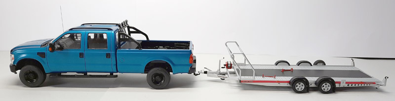 24 mei 2021Wim Hoogendoorn: "Ik heb de Ford F350 (Meng 1:24) met Brain James trailer (Aoshima 1:24) klaar, na wat mislukte airbrush- en afplakperikelen. Nu nog de Ford GT40 Mark II 1966 (Fujimi 1:24) bouwen, om op de trailer te zetten."
