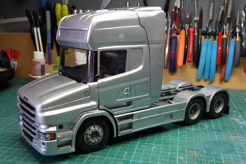 4 september 2020Wim Hoogendoorn: "Hier is een update van de bouw van mijn Scania T-serie, die in het afbouw-stadium is. Het meeste is gespoten en ik ben nu druk met het samenbouwen en detailleren. De body is gespoten met Zero Paints 'Brilliant Silver' en afgelakt met 2K glanslak van Zero Paints."