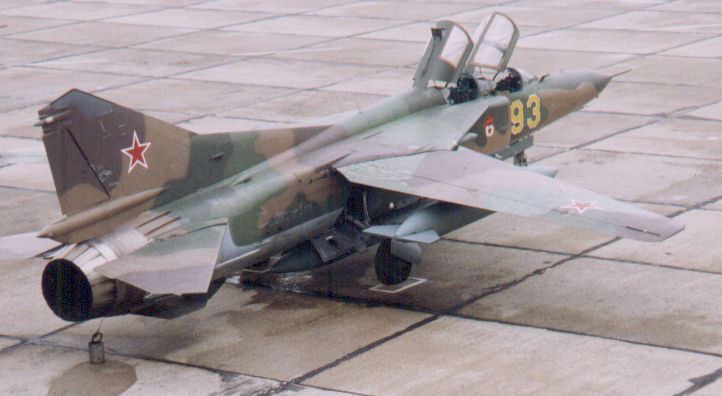 Lindsay writes: "Look-down shot of MiG 23UB "Yellow 93" of the Lärz-based 19th Fighter-Bomber Regiment shortly before departure to Russia in March 1993."