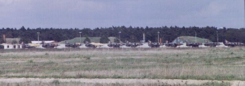 The west end of the flightline, showing eleven MiG 23's, all made flight-ready for the withdrawal.