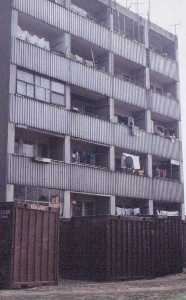 | An officers appartment building near the Finow gate. The small containers in front of the building was another indication that a move was to take place. Photo by Theo van den Boomen, 14 April 1993